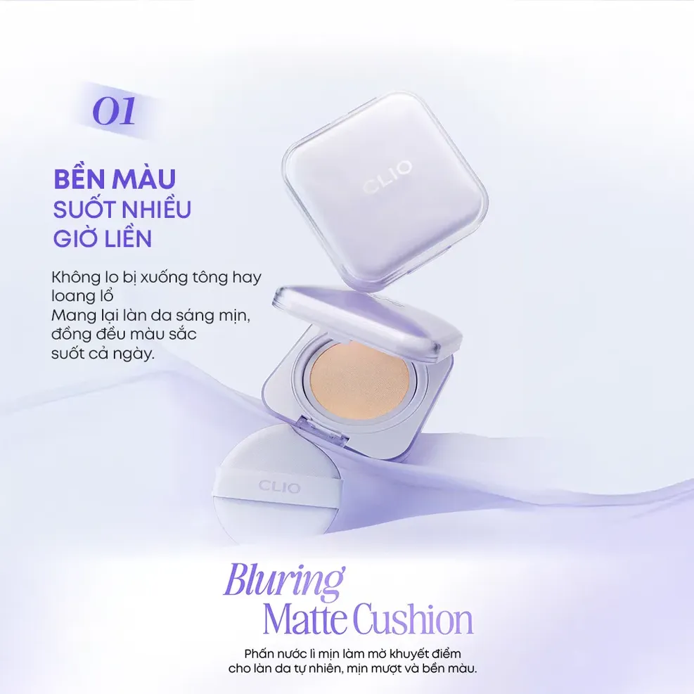 Clio Mesh Blur Cushion là dòng phấn nước tiên tiến, mang lại lớp nền mịn mượt như lụa với hiệu ứng bán lì (semi-matte), phù hợp cho làn da dầu và da hỗn hợp thiên khô. Sản phẩm giúp cân bằng độ ẩm, kiểm soát bã nhờn hiệu quả mà vẫn duy trì cảm giác thông thoáng và nhẹ tênh trên da.